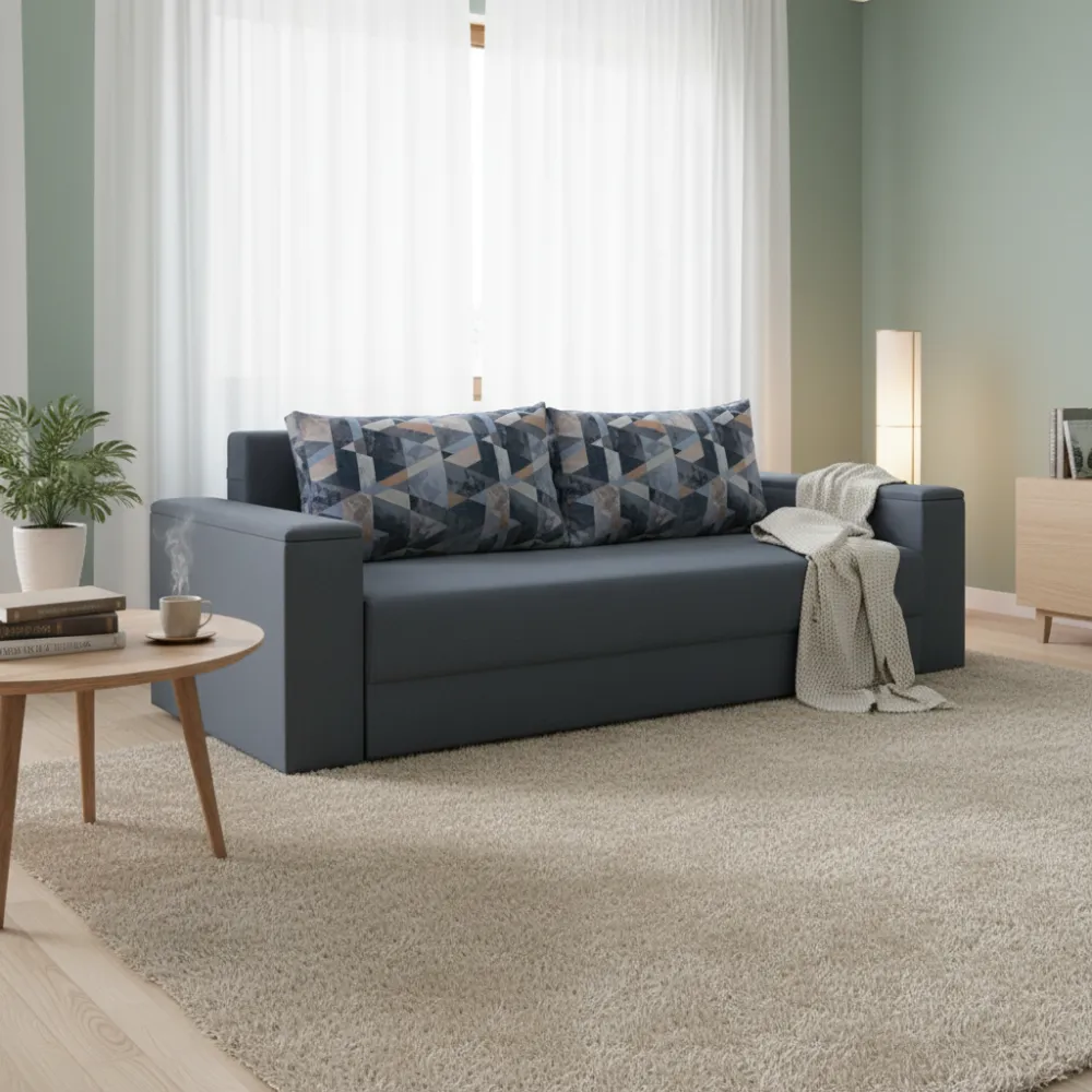 Функциональность: Удобный механизм трансформации позволяет легко превратить диван в полноценное спальное место размером 160x200 см для комфортного отдыха.