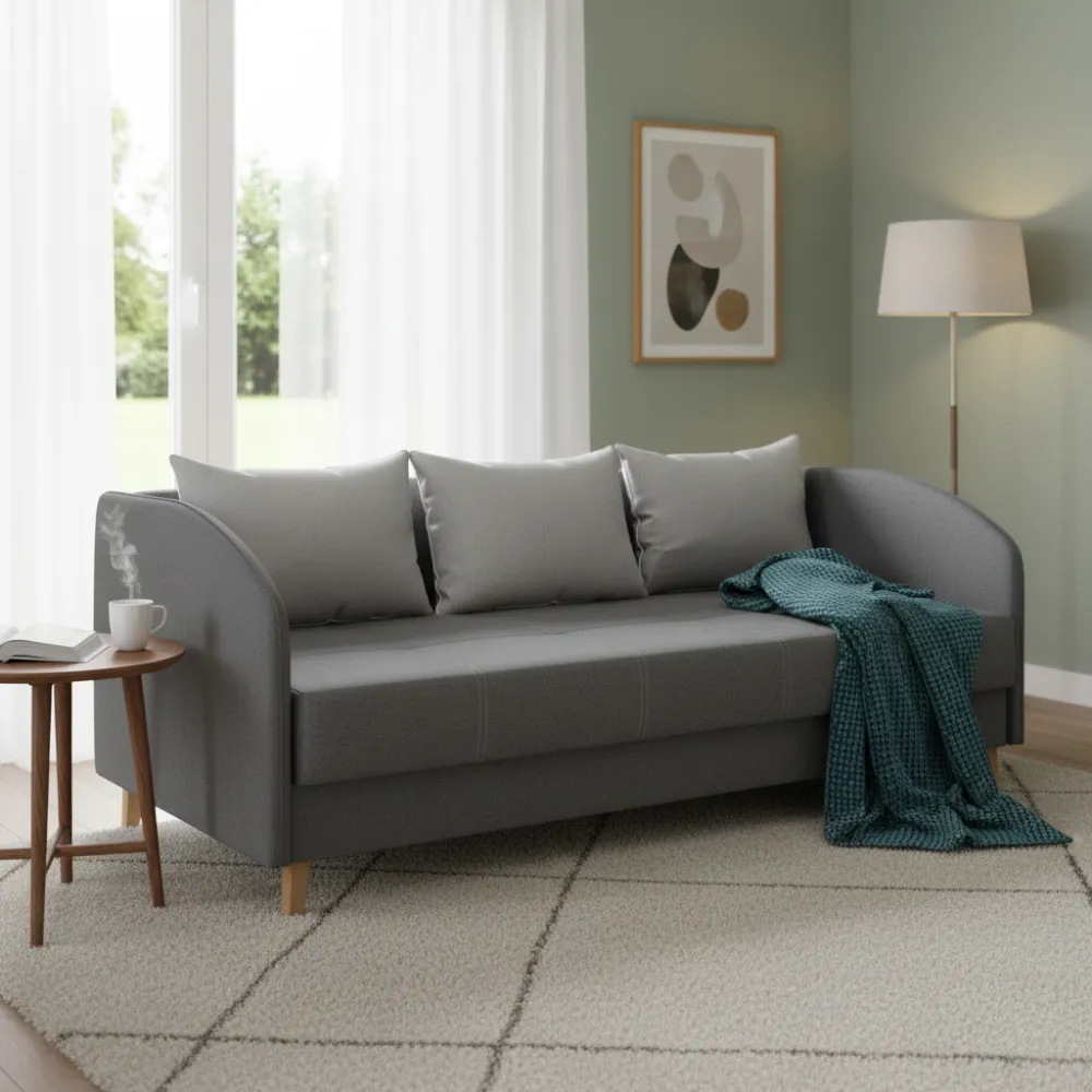Материал обивки: Ткань. Обивка приятна на ощупь и устойчива к износу, что обеспечивает долговечность и лёгкость ухода. Цвет исполнения — серые — подчёркивает эстетичность модели.