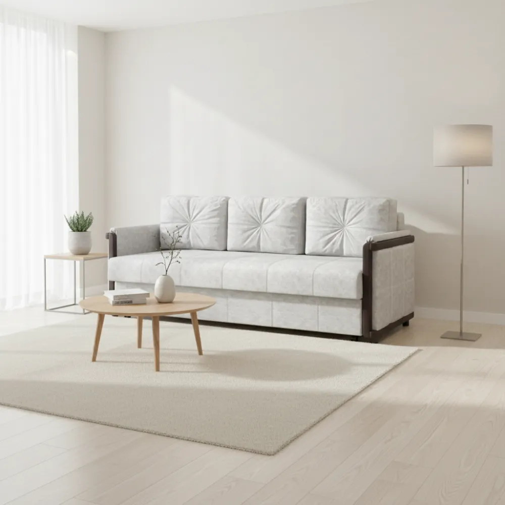 Функциональность: Удобный механизм трансформации позволяет легко превратить диван в полноценное спальное место размером 150x195 см для комфортного отдыха.