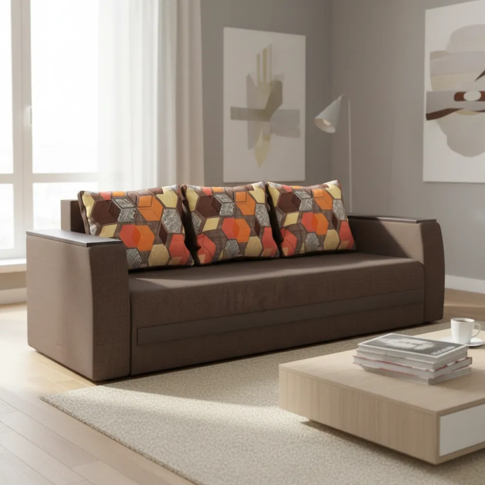 Функциональность: Удобный механизм трансформации позволяет легко превратить диван в полноценное спальное место размером 190x160 см для комфортного отдыха.
