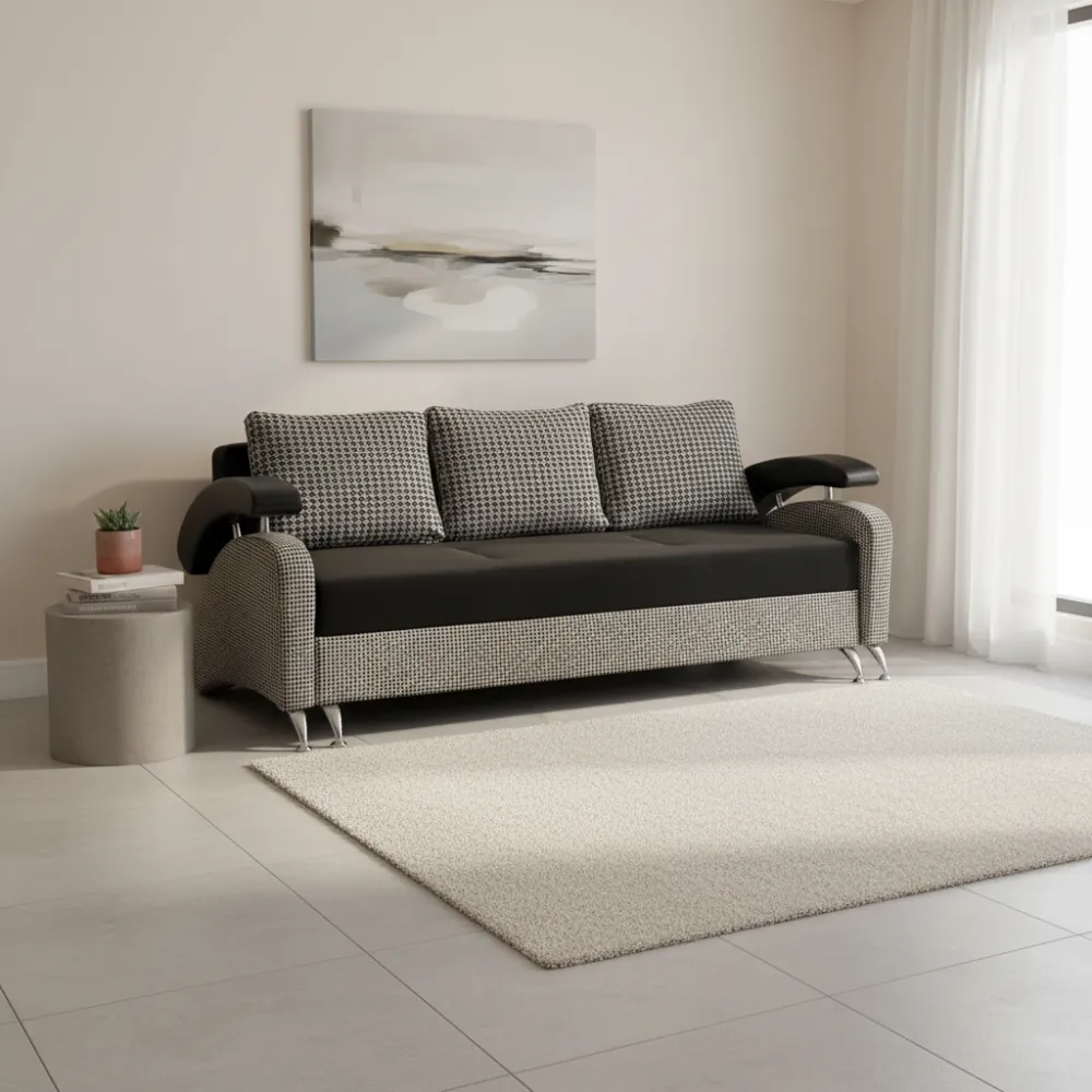 Функциональность: Удобный механизм трансформации позволяет легко превратить диван в полноценное спальное место размером 150x195 см для комфортного отдыха.