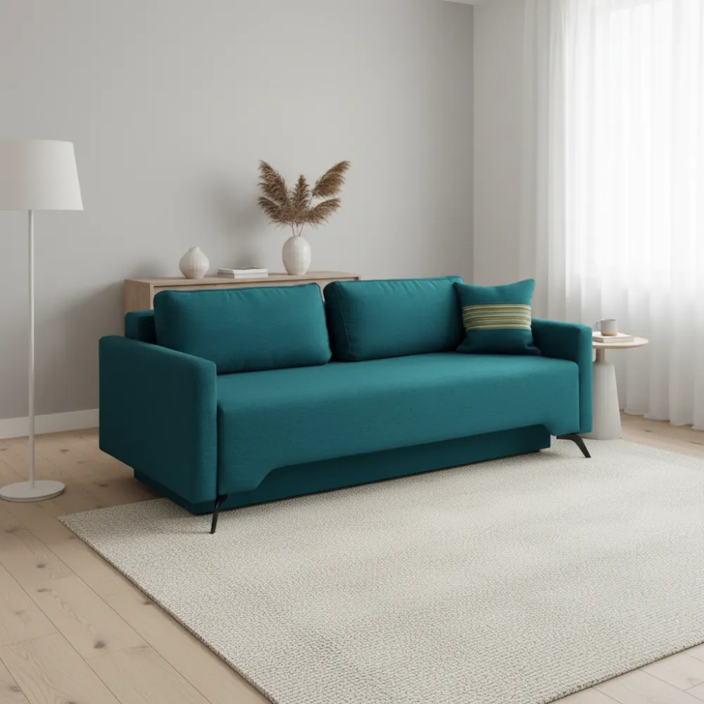 Функциональность: Удобный механизм трансформации позволяет легко превратить диван в полноценное спальное место размером 140x190 см для комфортного отдыха.