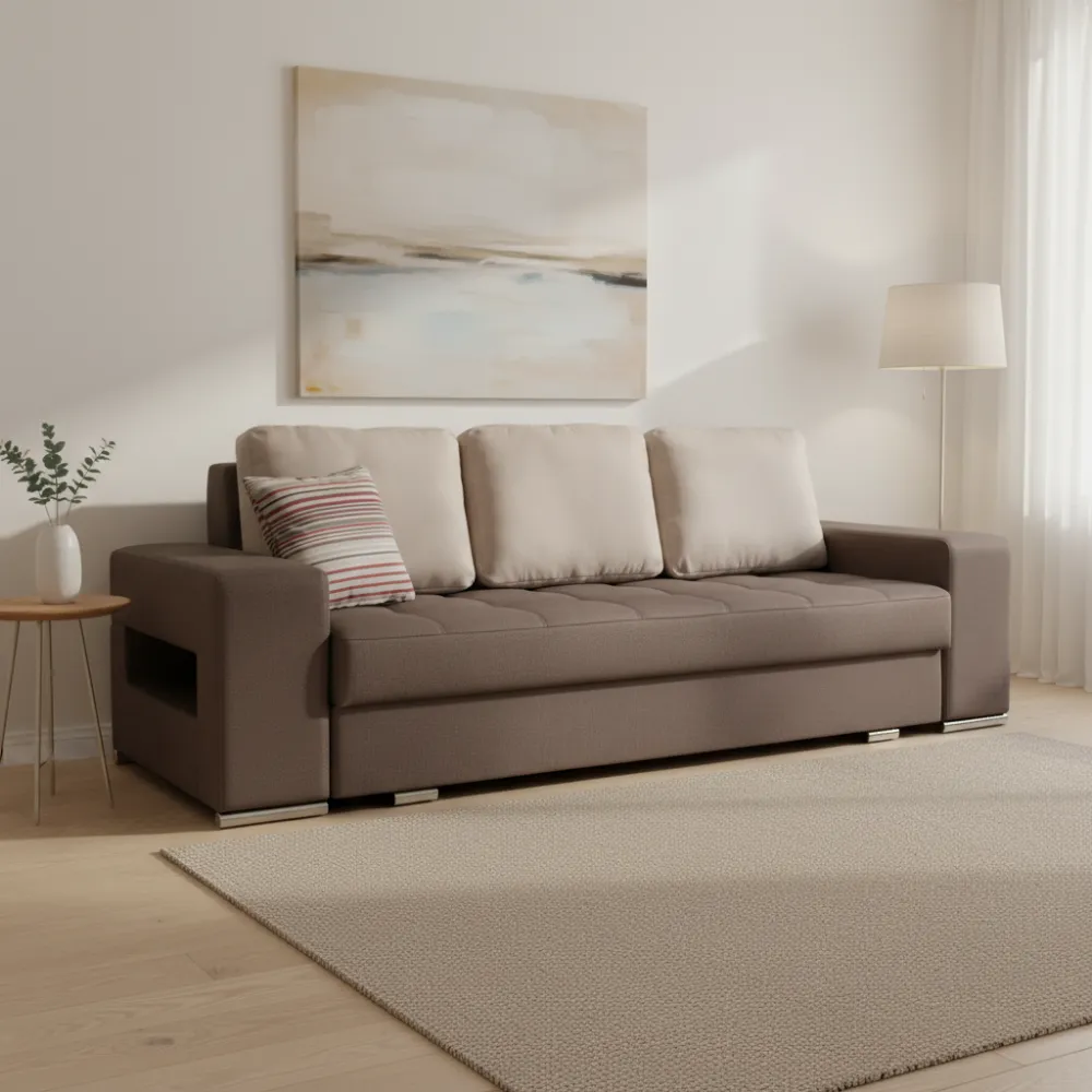 Функциональность: Удобный механизм трансформации позволяет легко превратить диван в полноценное спальное место размером 150x190 см для комфортного отдыха.