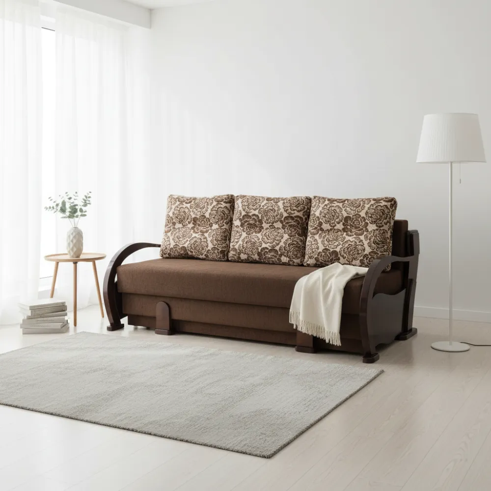 Функциональность: Удобный механизм трансформации позволяет легко превратить диван в полноценное спальное место размером 145x190 см для комфортного отдыха.