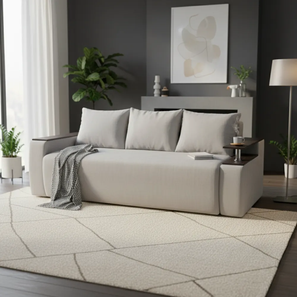Функциональность: Удобный механизм трансформации позволяет легко превратить диван в полноценное спальное место размером 190x160 см для комфортного отдыха.