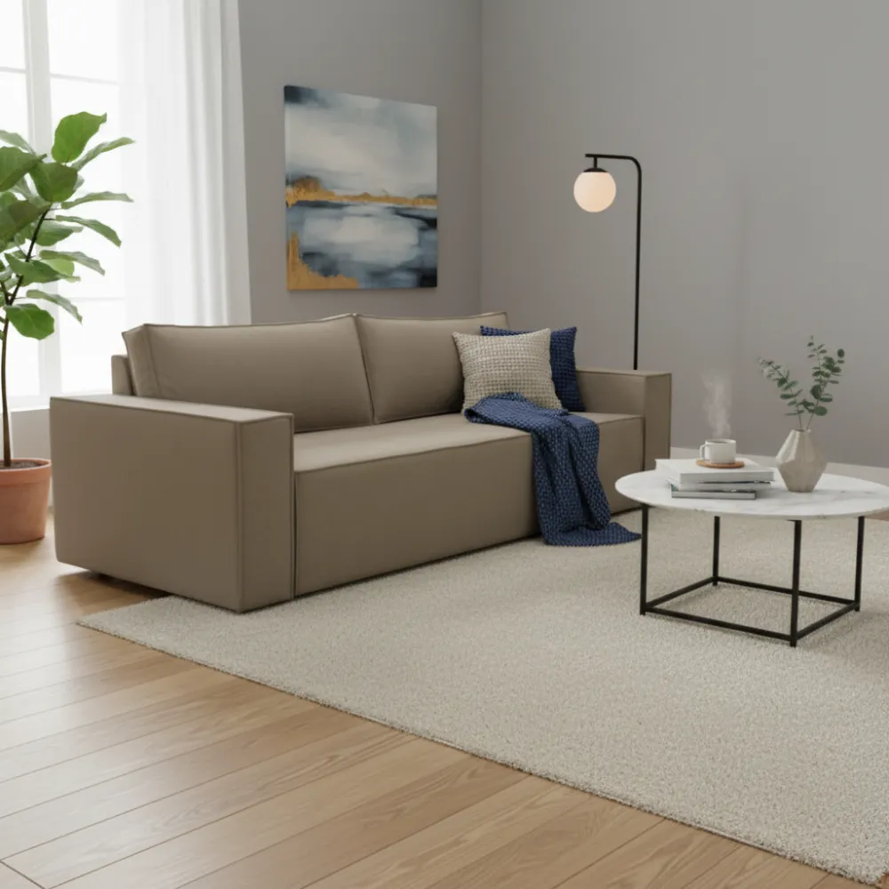 Функциональность: Удобный механизм трансформации позволяет легко превратить диван в полноценное спальное место размером 160x200 см для комфортного отдыха.