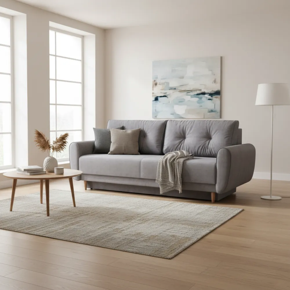 Функциональность: Удобный механизм трансформации позволяет легко превратить диван в полноценное спальное место размером 150x190 см для комфортного отдыха.