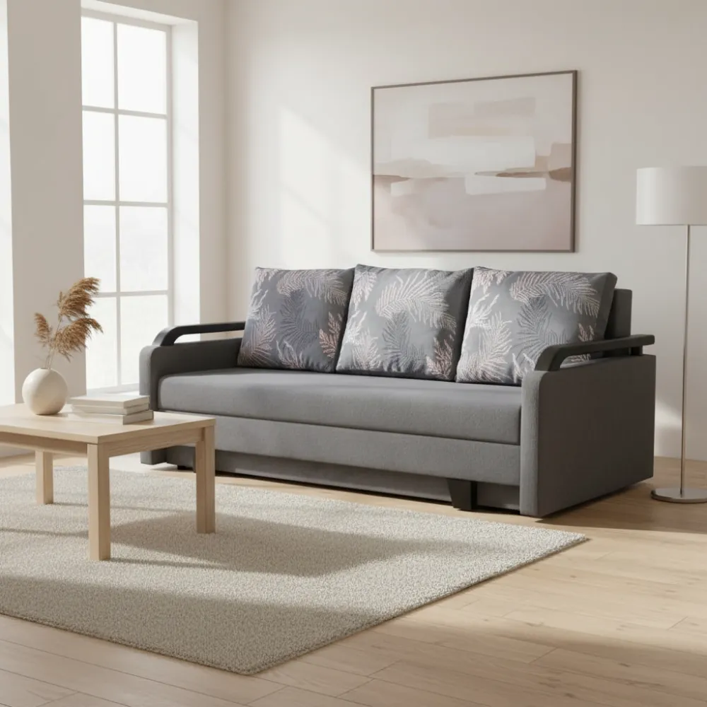 Функциональность: Удобный механизм трансформации позволяет легко превратить диван в полноценное спальное место размером 150x190 см для комфортного отдыха.