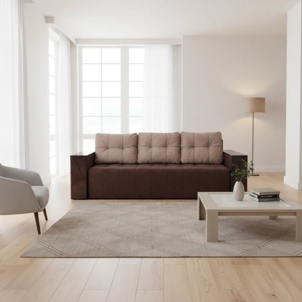Функциональность: Удобный механизм трансформации позволяет легко превратить диван в полноценное спальное место размером 145x190 см для комфортного отдыха.