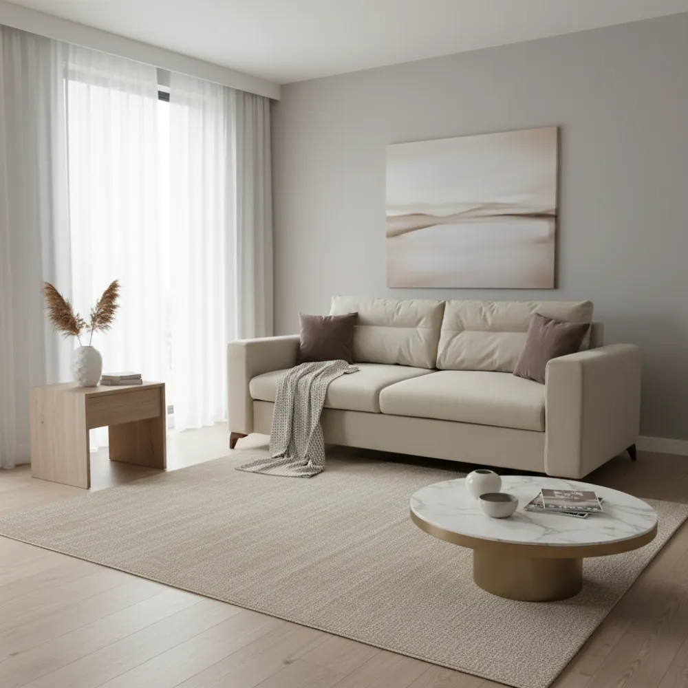 Материал обивки: Ткань. Обивка приятна на ощупь и устойчива к износу, что обеспечивает долговечность и лёгкость ухода. Цвет исполнения — бежевые — подчёркивает эстетичность модели.