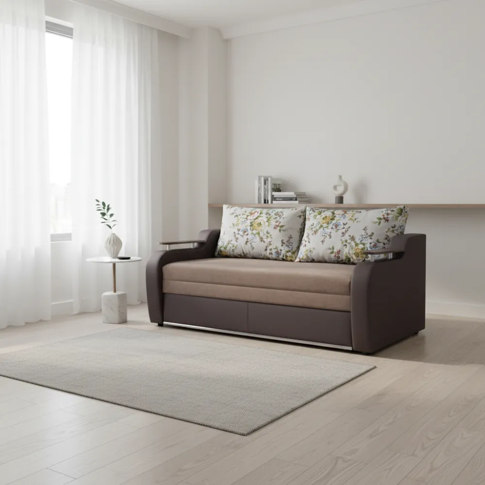 Функциональность: Удобный механизм трансформации позволяет легко превратить диван в полноценное спальное место размером 190x160 см для комфортного отдыха.
