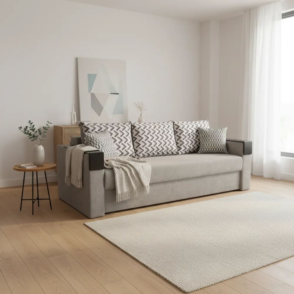 Функциональность: Удобный механизм трансформации позволяет легко превратить диван в полноценное спальное место размером 195х145 см для комфортного отдыха.