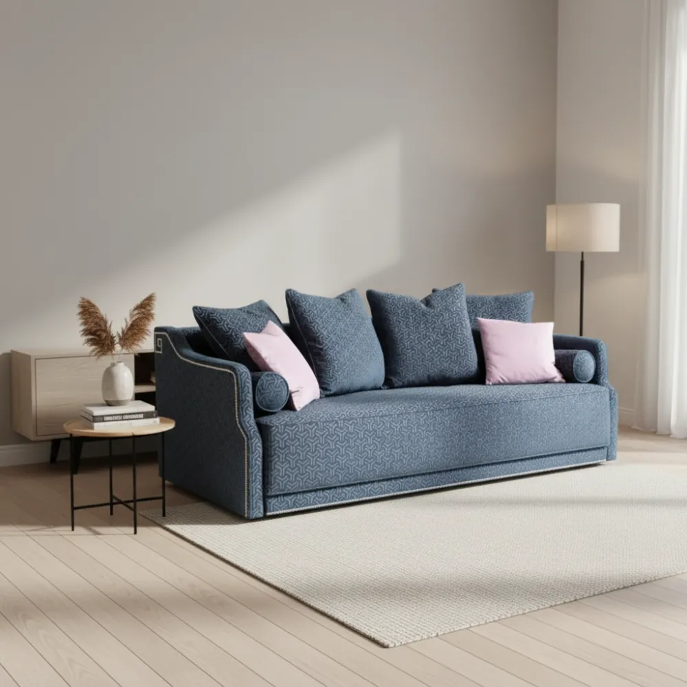 Функциональность: Удобный механизм трансформации позволяет легко превратить диван в полноценное спальное место размером 150x195 см для комфортного отдыха.