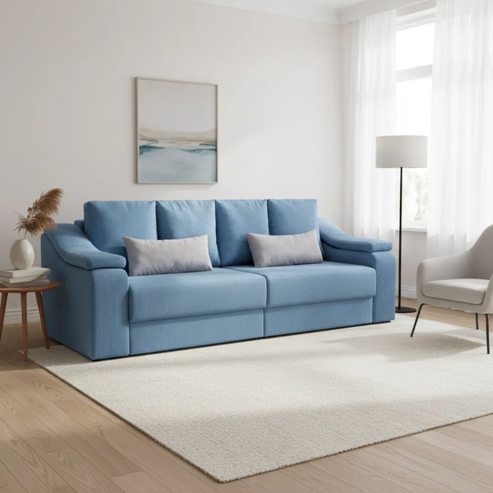 Функциональность: Удобный механизм трансформации позволяет легко превратить диван в полноценное спальное место размером 160x195 см для комфортного отдыха.