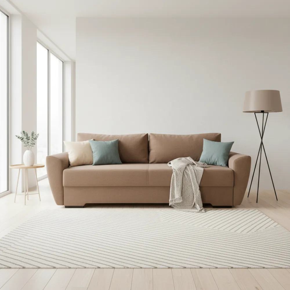 Функциональность: Удобный механизм трансформации позволяет легко превратить диван в полноценное спальное место размером 150x200 см для комфортного отдыха.