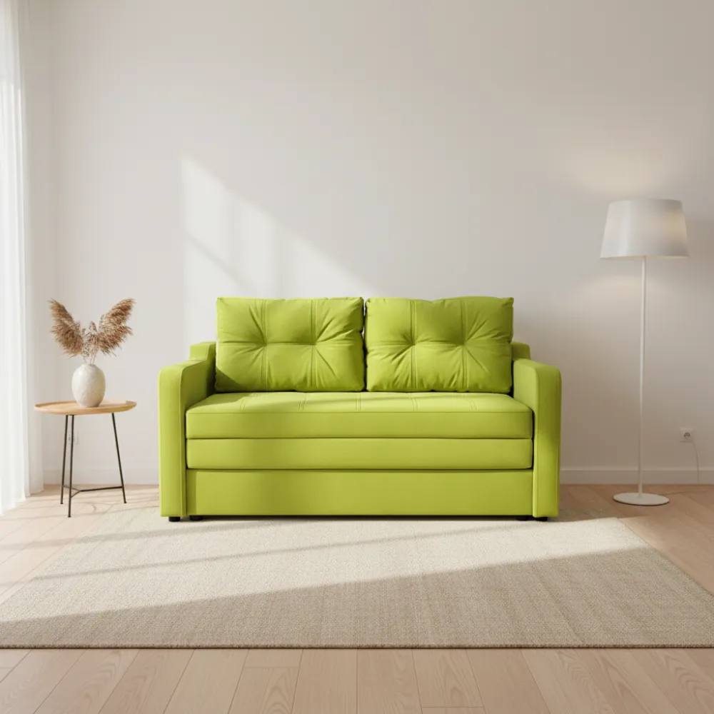 Функциональность: Удобный механизм трансформации позволяет легко превратить диван в полноценное спальное место размером 140x190 см для комфортного отдыха.