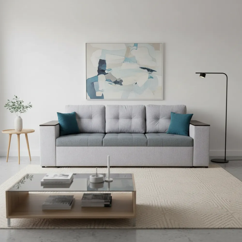 Функциональность: Удобный механизм трансформации позволяет легко превратить диван в полноценное спальное место размером 150x200 см для комфортного отдыха.