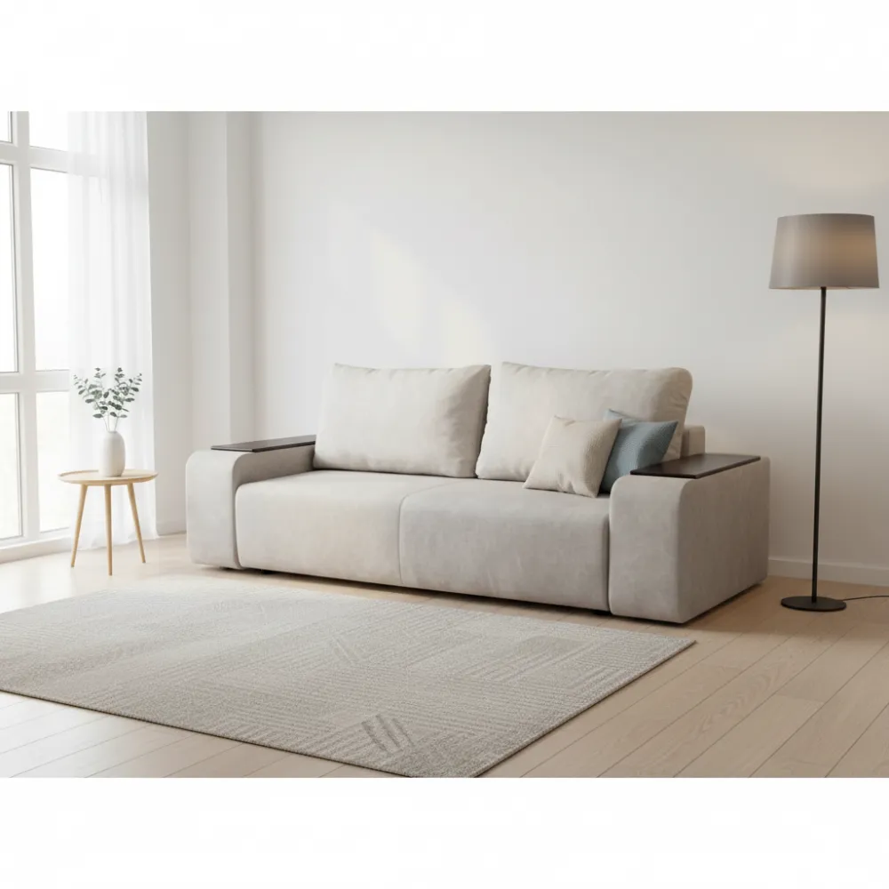 Функциональность: Удобный механизм трансформации позволяет легко превратить диван в полноценное спальное место размером 150x195 см для комфортного отдыха.