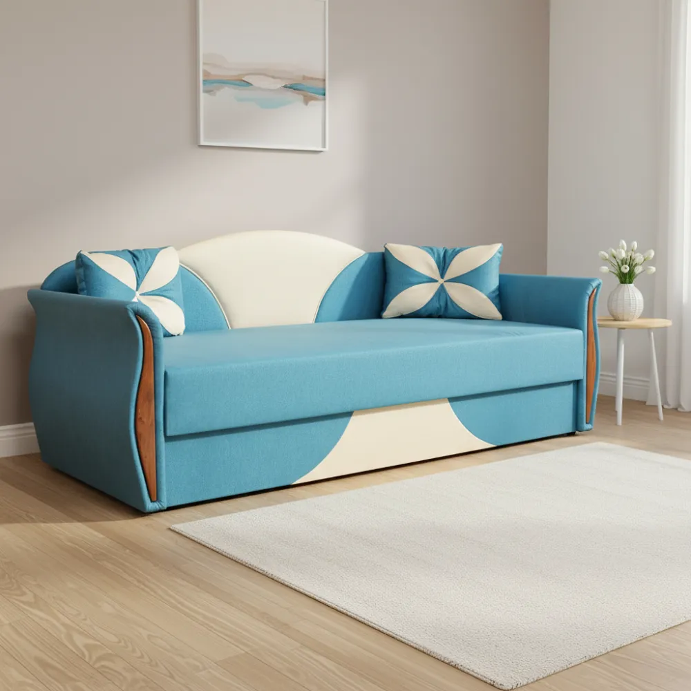 Материал обивки: Ткань. Обивка приятна на ощупь и устойчива к износу, что обеспечивает долговечность и лёгкость ухода. Цвет исполнения — бирюзовые — подчёркивает эстетичность модели.