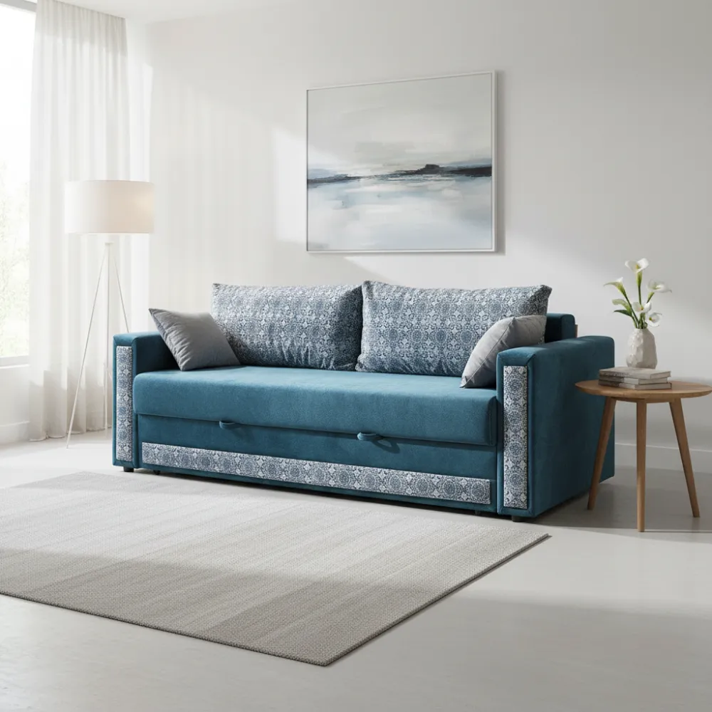 Функциональность: Удобный механизм трансформации позволяет легко превратить диван в полноценное спальное место размером 195х145 см для комфортного отдыха.