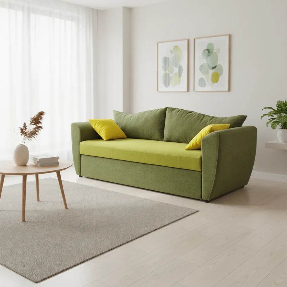 Материал обивки: Ткань. Обивка приятна на ощупь и устойчива к износу, что обеспечивает долговечность и лёгкость ухода. Цвет исполнения — салатовые — подчёркивает эстетичность модели.