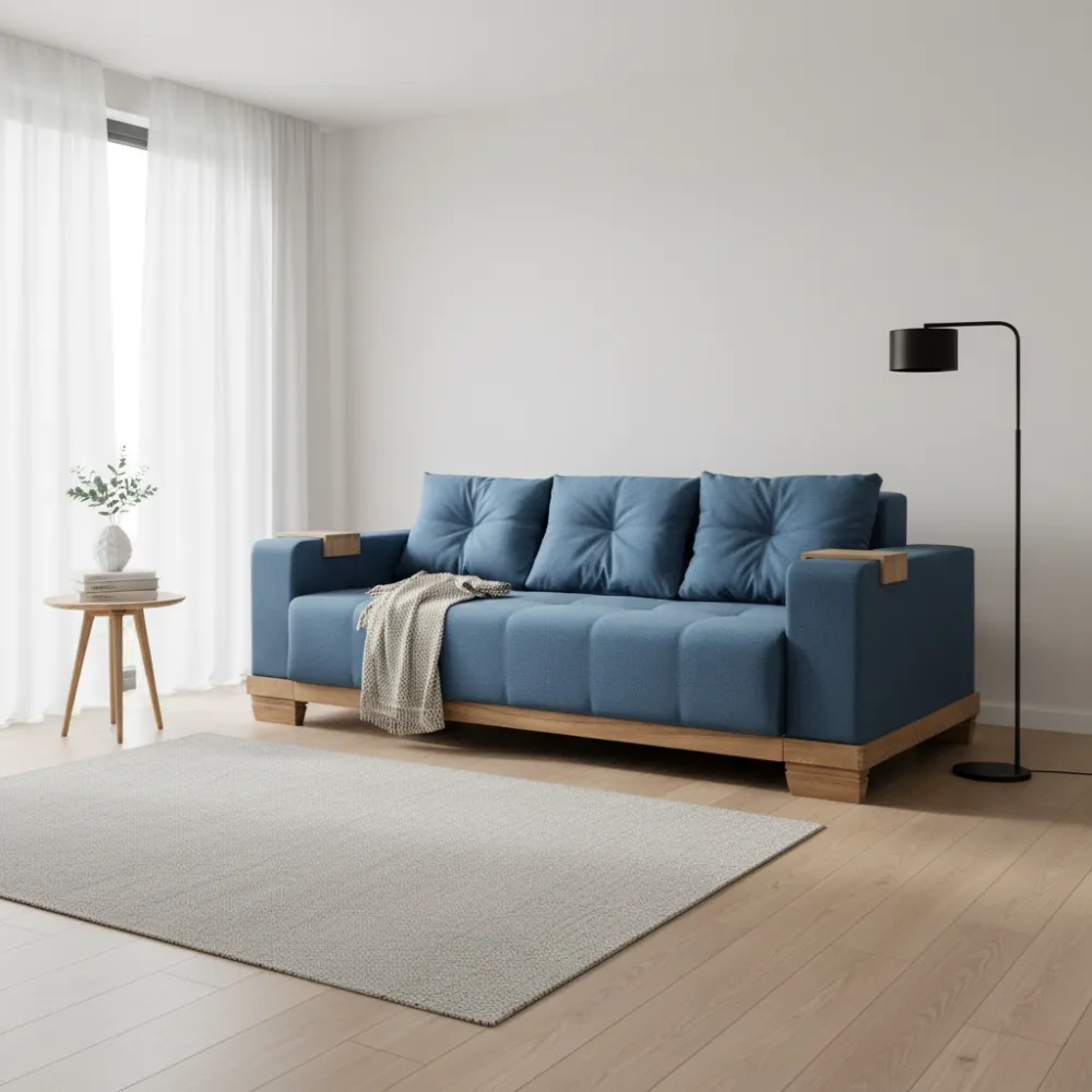 Функциональность: Удобный механизм трансформации позволяет легко превратить диван в полноценное спальное место размером 190x160 см для комфортного отдыха.