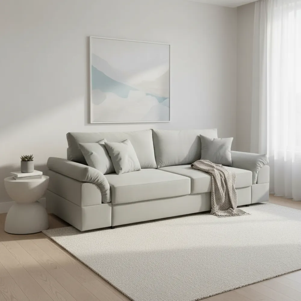 Функциональность: Удобный механизм трансформации позволяет легко превратить диван в полноценное спальное место размером 155x190 см для комфортного отдыха.