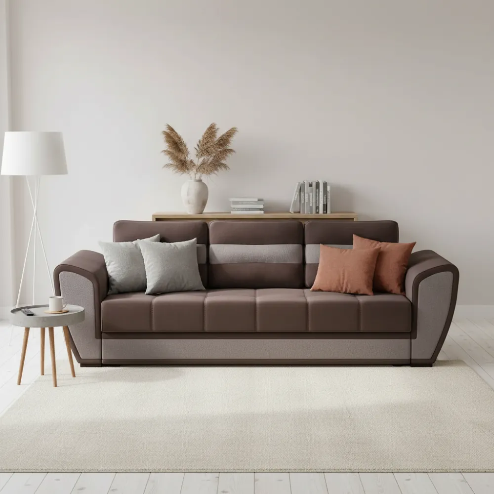 Функциональность: Удобный механизм трансформации позволяет легко превратить диван в полноценное спальное место размером 150x190 см для комфортного отдыха.
