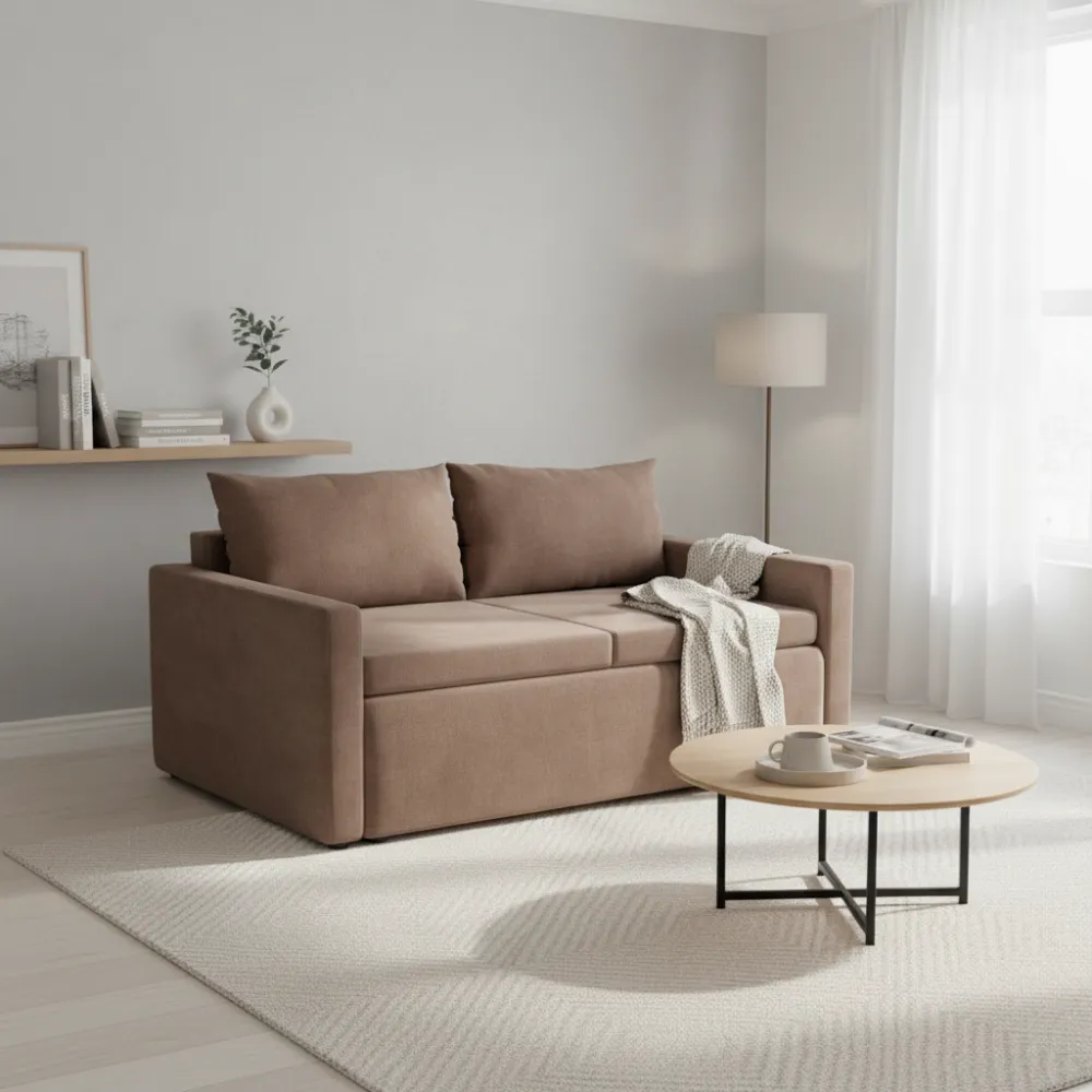 Функциональность: Удобный механизм трансформации позволяет легко превратить диван в полноценное спальное место размером 160x195 см для комфортного отдыха.