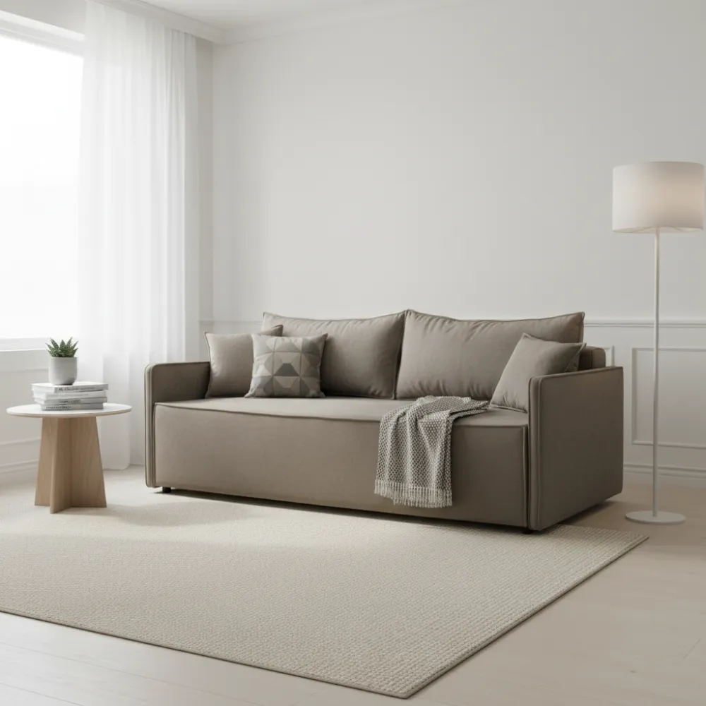 Функциональность: Удобный механизм трансформации позволяет легко превратить диван в полноценное спальное место размером 190x160 см для комфортного отдыха.
