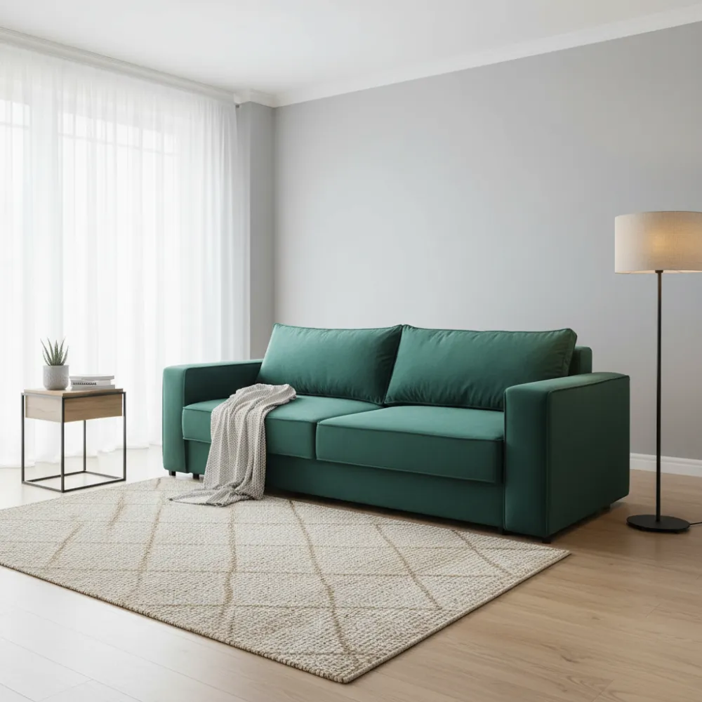 Функциональность: Удобный механизм трансформации позволяет легко превратить диван в полноценное спальное место размером 190x160 см для комфортного отдыха.