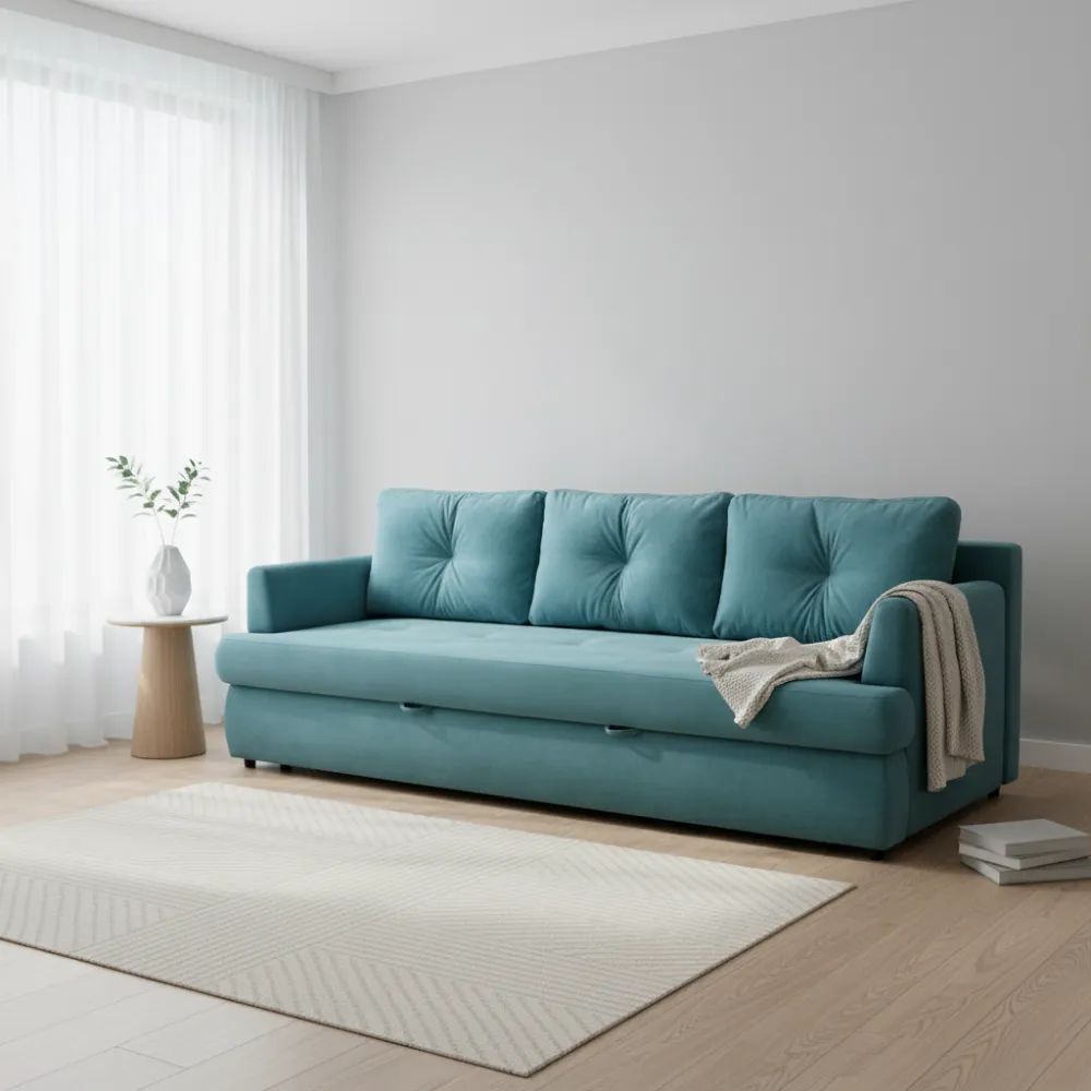 Функциональность: Удобный механизм трансформации позволяет легко превратить диван в полноценное спальное место размером 140x195 см для комфортного отдыха.