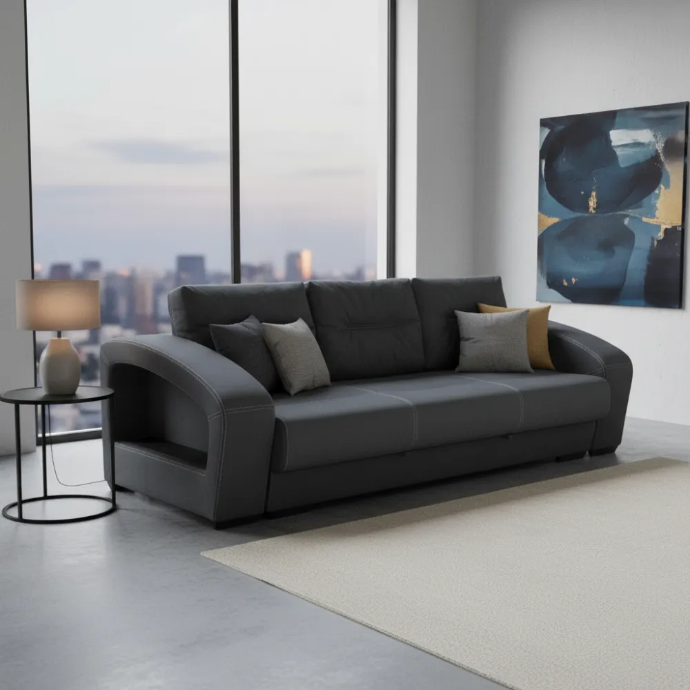 Функциональность: Удобный механизм трансформации позволяет легко превратить диван в полноценное спальное место размером 155x200 см для комфортного отдыха.