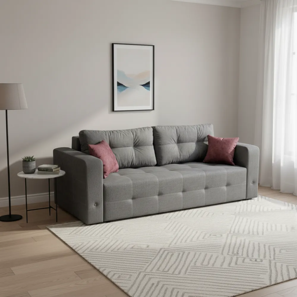 Функциональность: Удобный механизм трансформации позволяет легко превратить диван в полноценное спальное место размером 150x190 см для комфортного отдыха.