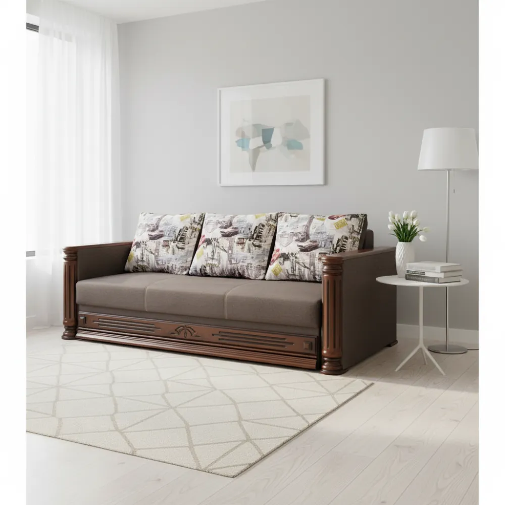 Функциональность: Удобный механизм трансформации позволяет легко превратить диван в полноценное спальное место размером 150x190 см для комфортного отдыха.