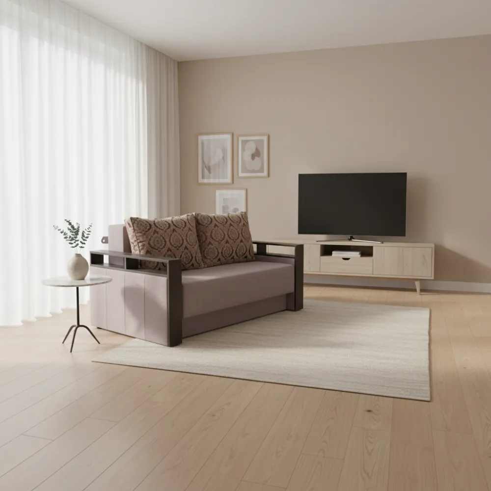 Функциональность: Удобный механизм трансформации позволяет легко превратить диван в полноценное спальное место размером 130x195 см для комфортного отдыха.