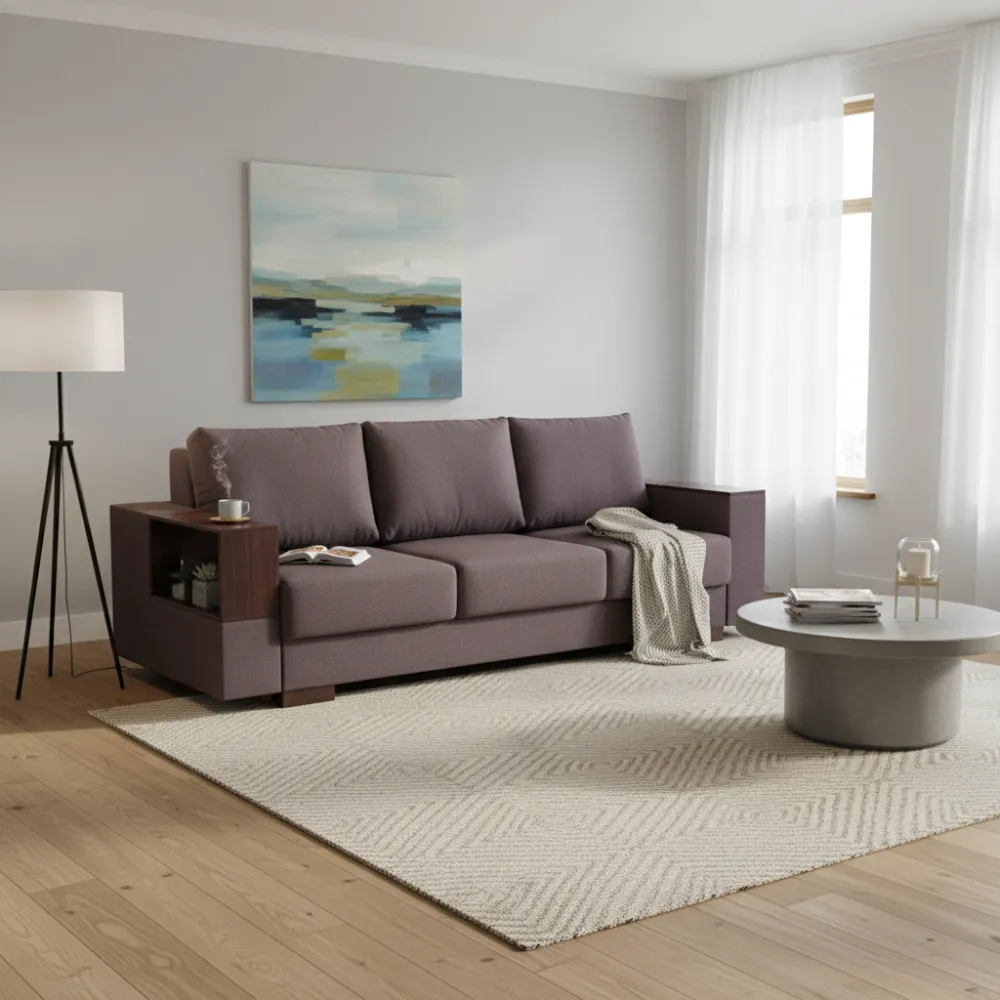 Функциональность: Удобный механизм трансформации позволяет легко превратить диван в полноценное спальное место размером 160x200 см для комфортного отдыха.