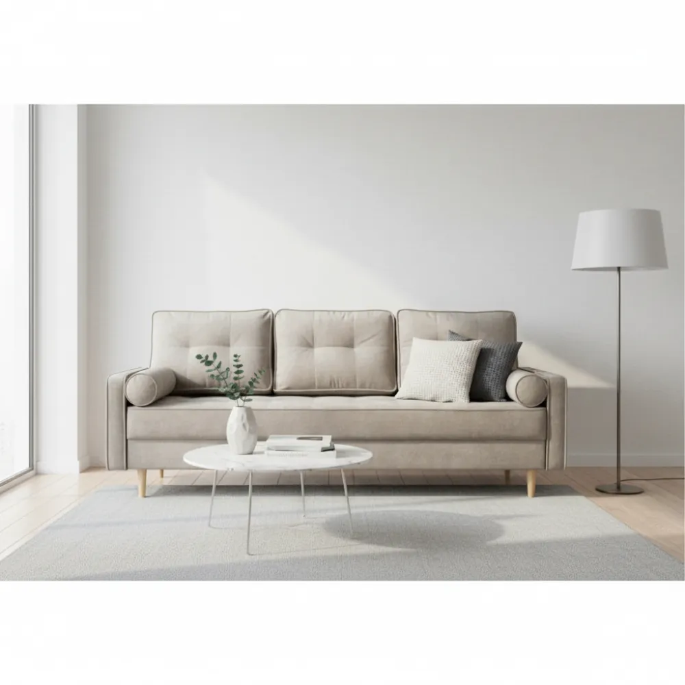 Материал обивки: Ткань. Обивка приятна на ощупь и устойчива к износу, что обеспечивает долговечность и лёгкость ухода. Цвет исполнения — бежевые — подчёркивает эстетичность модели.