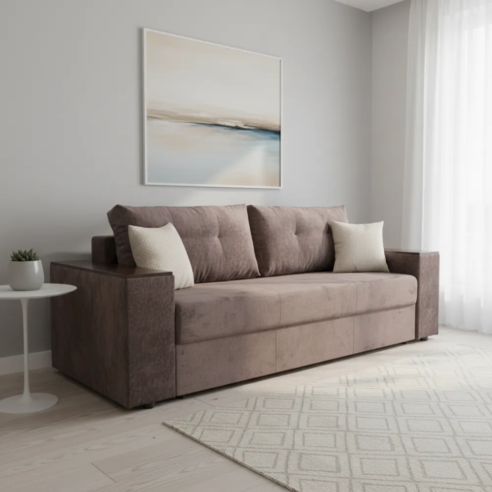 Функциональность: Удобный механизм трансформации позволяет легко превратить диван в полноценное спальное место размером 140x190 см для комфортного отдыха.