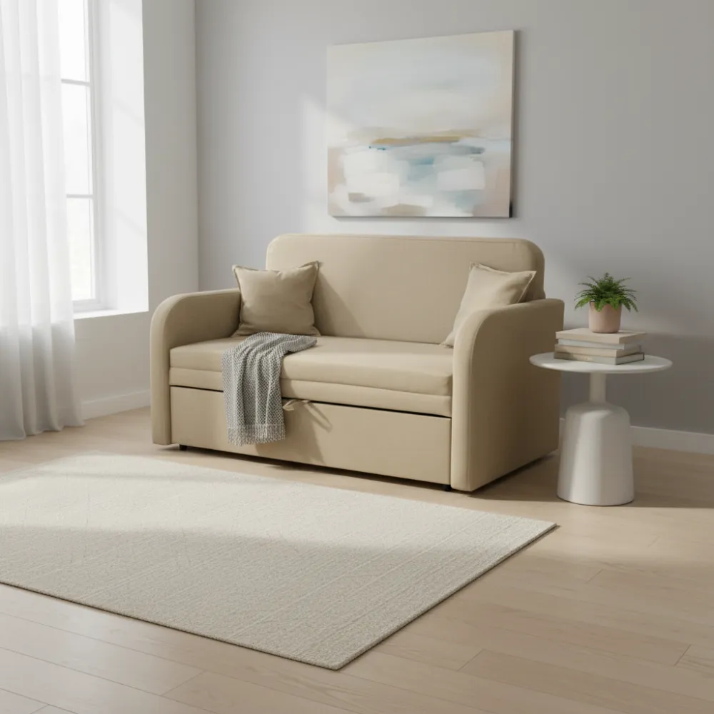 Функциональность: Удобный механизм трансформации позволяет легко превратить диван в полноценное спальное место размером 130x190 см для комфортного отдыха.
