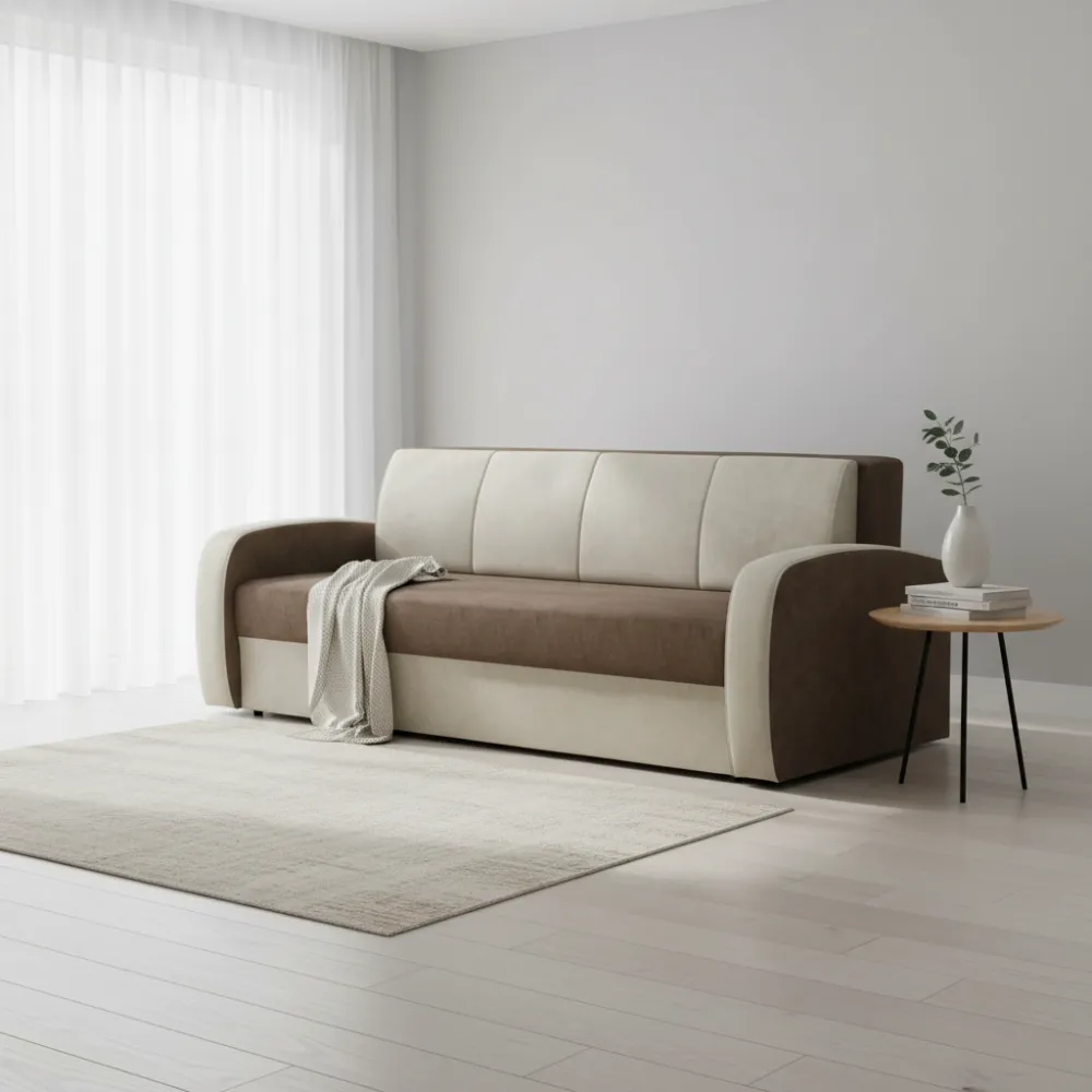 Функциональность: Удобный механизм трансформации позволяет легко превратить диван в полноценное спальное место размером 165x200 см для комфортного отдыха.