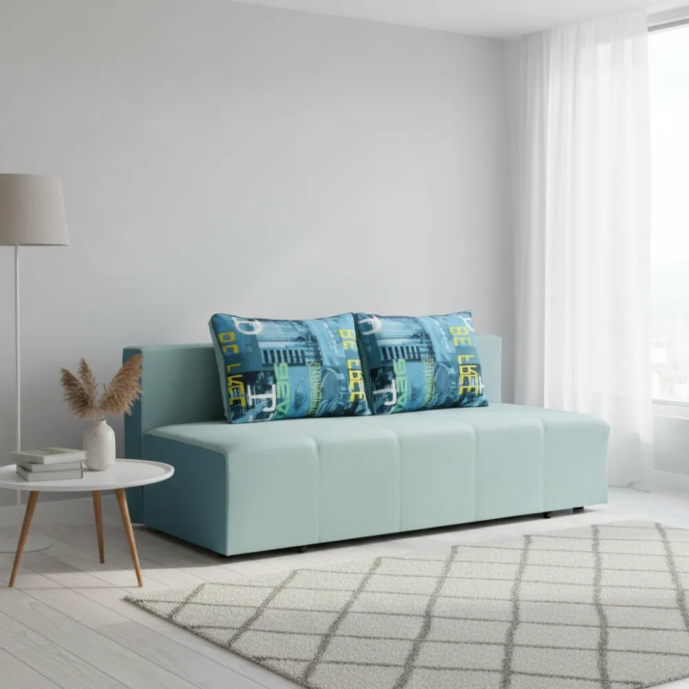 Материал обивки: Ткань. Обивка приятна на ощупь и устойчива к износу, что обеспечивает долговечность и лёгкость ухода. Цвет исполнения — бирюзовые — подчёркивает эстетичность модели.