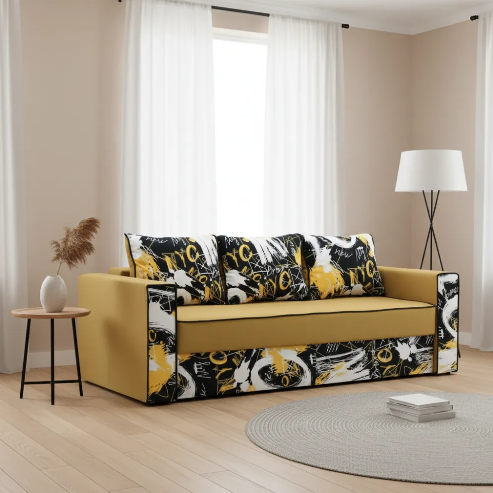 Материал обивки: Ткань. Обивка приятна на ощупь и устойчива к износу, что обеспечивает долговечность и лёгкость ухода. Цвет исполнения — желтые — подчёркивает эстетичность модели.
