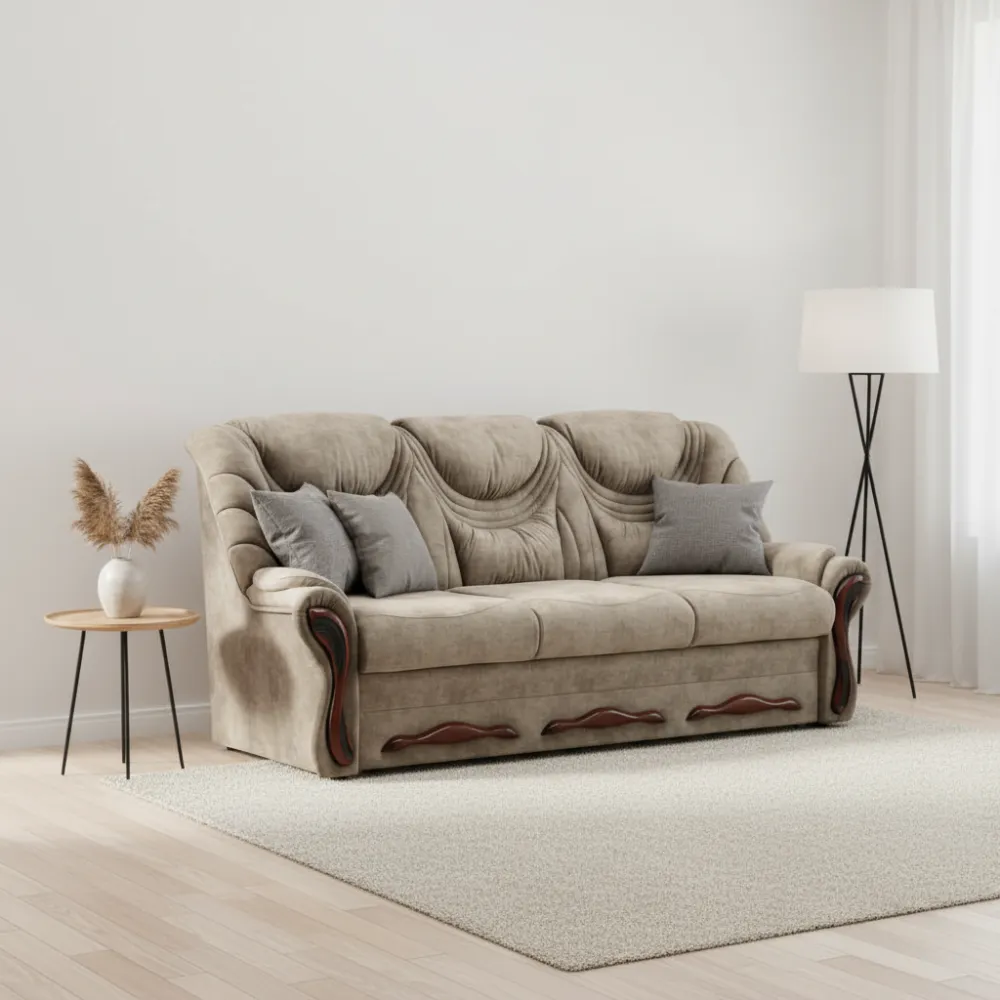 Материал обивки: Ткань. Обивка приятна на ощупь и устойчива к износу, что обеспечивает долговечность и лёгкость ухода. Цвет исполнения — бежевые — подчёркивает эстетичность модели.