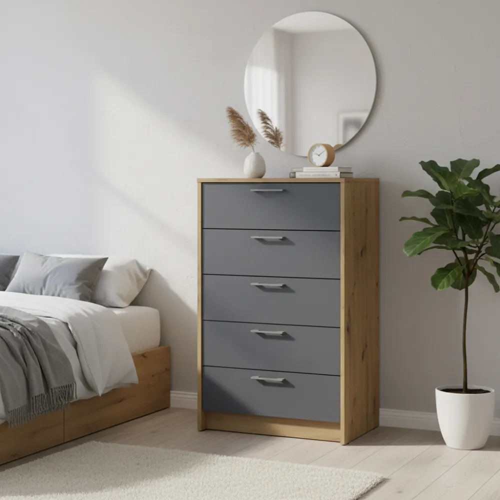 Комод Doros Ронди Дуб Артизан/Графит 5 ящиков 60х40х100 (41516188)