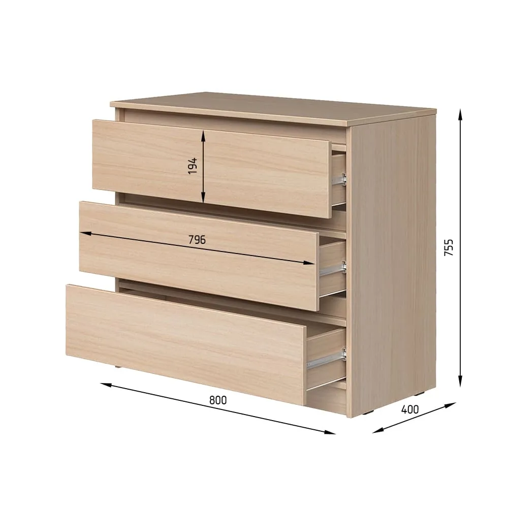 Комод К1 3Я 755х800х400 мм ДСП Белый