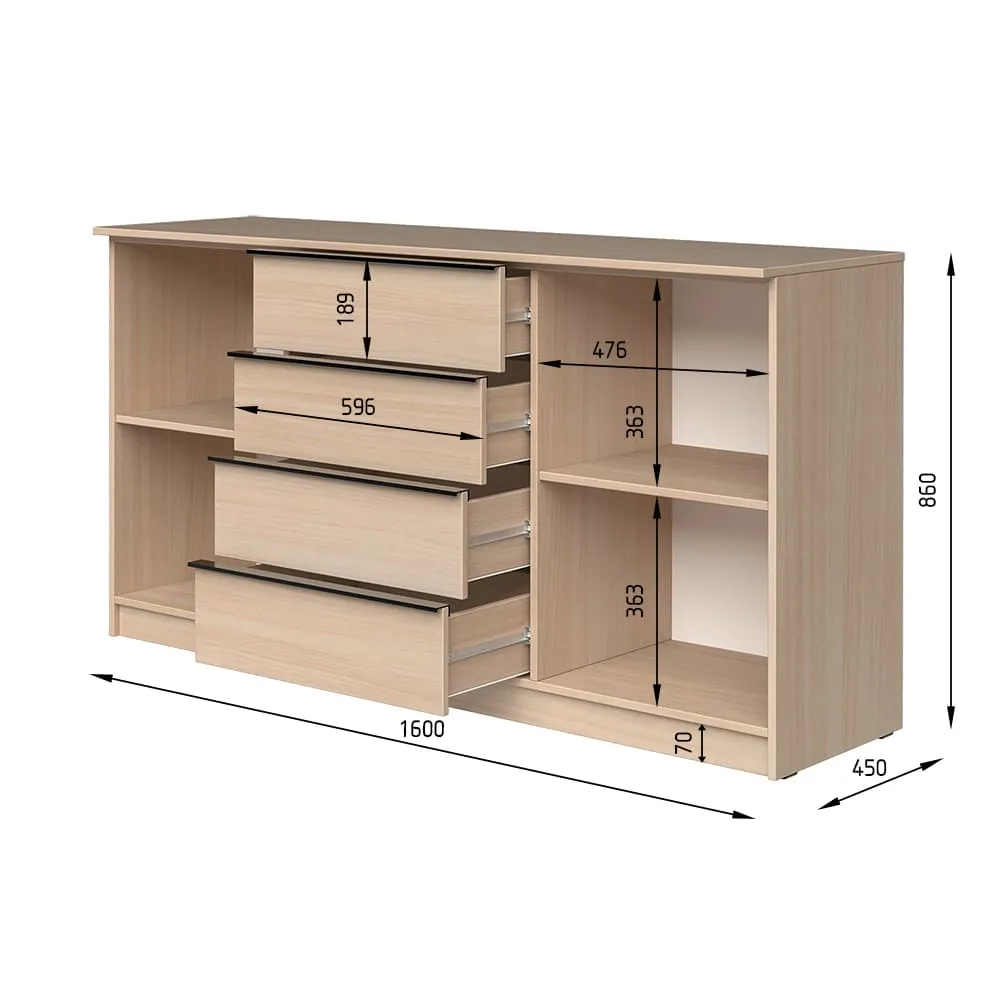 Комод К3 4Я2Д 860х1600х450 мм ДСП Белый