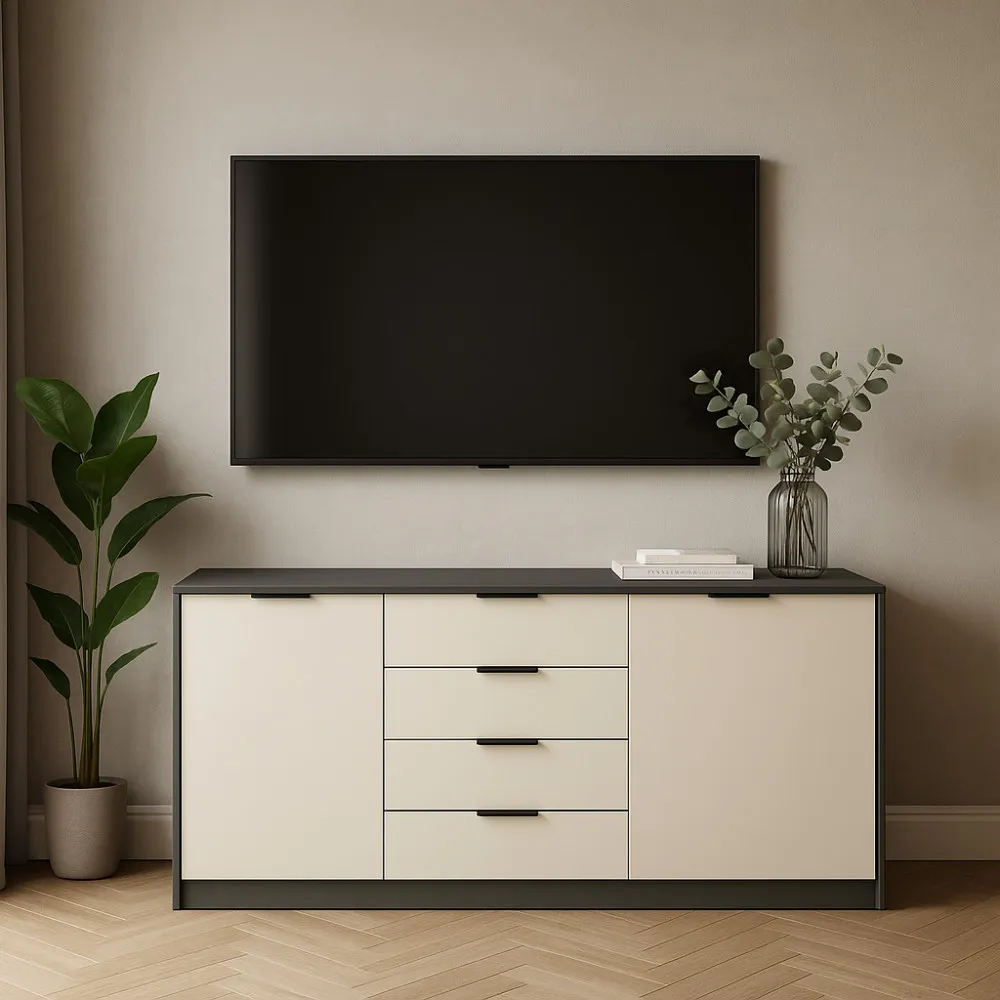 Комод К3 4Я2Д 860х1600х450 мм корпус ДСП Серый Графит фасад МДФ краска RAL9001 (Свет-беж)