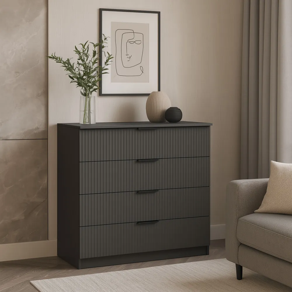 Комод К4 4Я 945х1000х450 мм корпус ДСП Серый Графит фасад МДФ краска RAL7012 (Серый) фрезерование Плаше Гросс