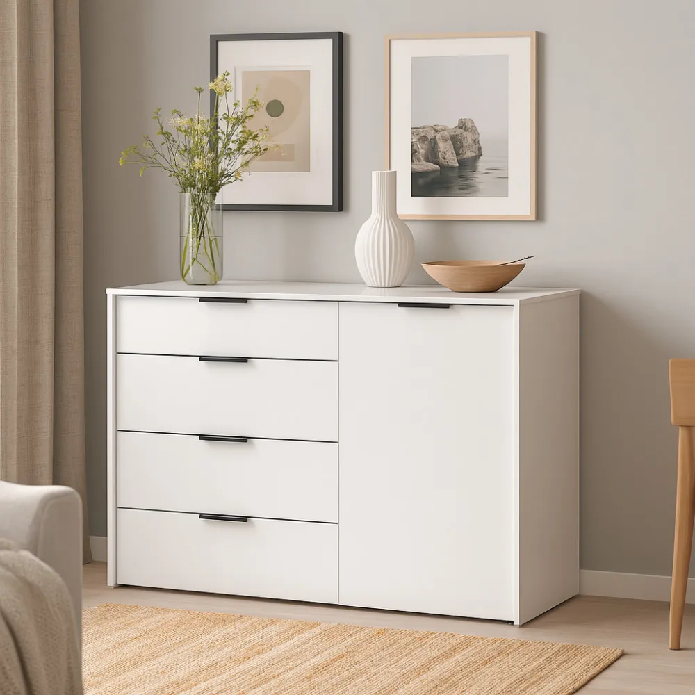 Комод К5 4Я1Д 880х1200х450 мм корпус ДСП Белый фасад МДФ краска RAL9003 (Белый)